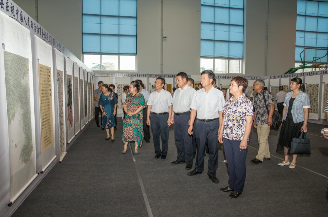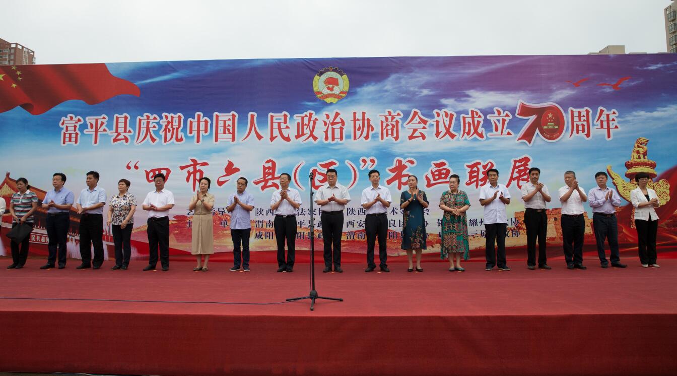 8月6日,由渭南市富平县、合阳县,西安市阎良区、铜川市耀州区、咸阳市泾阳县、咸阳市三原县等地政协联合举办的庆祝中国人民政治协商会议成立70周年“四市六县(区)” 书画联展活动在富平县首展。