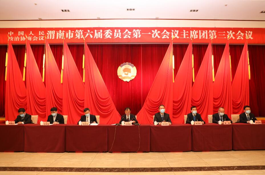 3月27日下午,政协渭南市六届一次会议主席团举行第三次会议。主席团会议主持人王晓军主持会议。